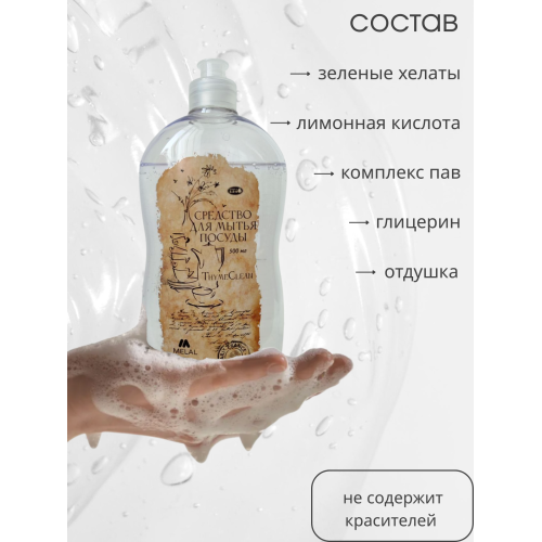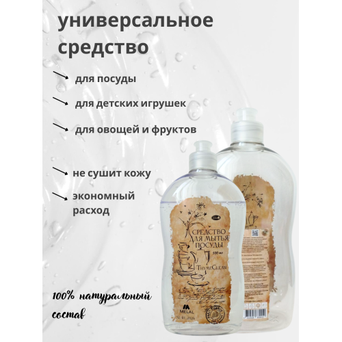 Это моющее средство от российского бренда MELAL. Оно биоразлагаемое, с антибактериальным эффектом для мытья всех видов посуды, детских игрушек, овощей и фруктов и кухонного инвентаря от любых видов загрязнений. Всего одна капля создает обильную пену, способную безупречно чисто вымыть посуду и не только, эффективно устраняя запахи, удаляя жир как в горячей, так и в холодной воде, не оставляя следов. Биоразлагаемые компоненты не вредят микрофлоре септических установок при использовании средства в соответствии со способом применения. Универсальный гель для мытья посуды в красивом флаконе порадует Вас и Ваших близких!