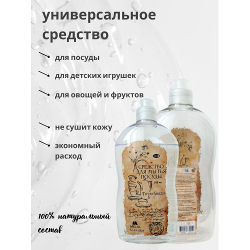 Это моющее средство от российского бренда MELAL. Оно биоразлагаемое, с антибактериальным эффектом для мытья всех видов посуды, детских игрушек, овощей и фруктов и кухонного инвентаря от любых видов загрязнений. Всего одна капля создает обильную пену, способную безупречно чисто вымыть посуду и не только, эффективно устраняя запахи, удаляя жир как в горячей, так и в холодной воде, не оставляя следов. Биоразлагаемые компоненты не вредят микрофлоре септических установок при использовании средства в соответствии со способом применения. Универсальный гель для мытья посуды в красивом флаконе порадует Вас и Ваших близких!